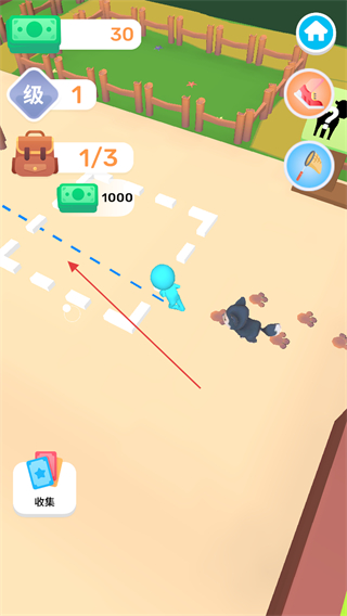 1、進(jìn)入游戲,操控藍(lán)色小人移動,靠近牛群,準(zhǔn)備抓捕。