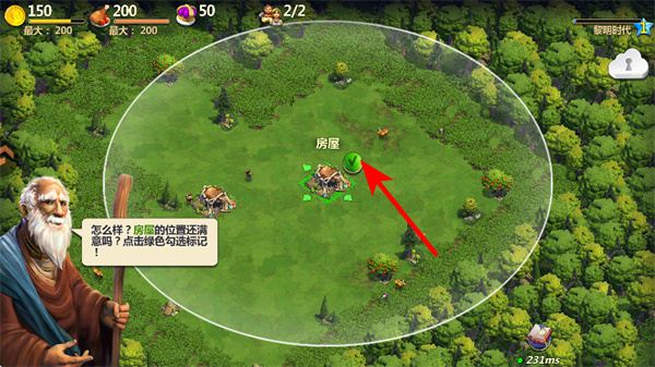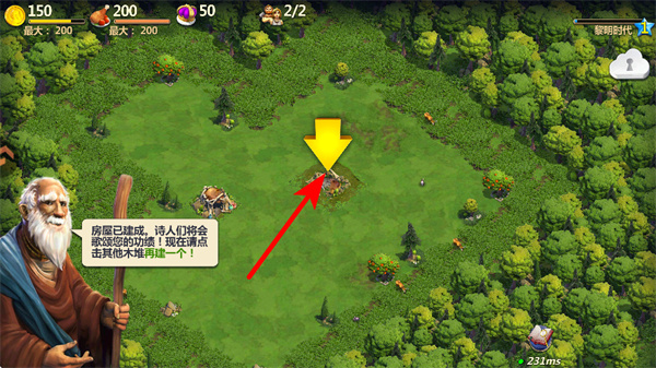 3、在已有房屋建造完成后,點(diǎn)擊其他木堆區(qū)域,繼續(xù)建造房屋,擴(kuò)展部落的規(guī)模,增加人口數(shù)量。