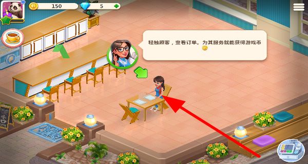 2、輕觸顧客,查看訂單內(nèi)容,根據(jù)訂單為顧客提供對(duì)應(yīng)的商品和服務(wù),以此獲取游戲幣。