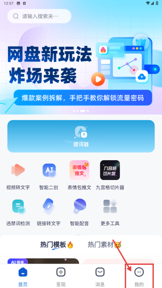 1、打開視頻創(chuàng)作類應(yīng)用,點(diǎn)擊底部我的選項,進(jìn)入個人中心頁面。