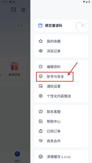 3、在功能列表中,選擇賬號與安全選項,進(jìn)入賬號管理頁。