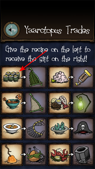 2、參與料理交易,在Yaarctopus Trades界面,選擇料理,進(jìn)行簡單交易以獲取右側(cè)的獎勵。