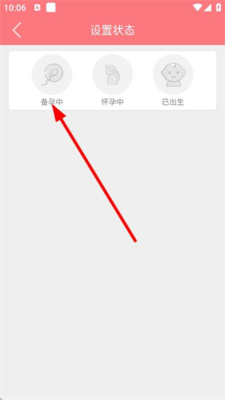 2、在設(shè)置狀態(tài)頁面,點擊備孕中,進(jìn)入備孕中信息填寫頁面。