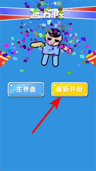 4、成功擊敗所有敵人后,會(huì)觸發(fā)勝利結(jié)算界面,可點(diǎn)擊重新開始繼續(xù)挑戰(zhàn)該模式,或返回主界面選擇其他競(jìng)賽模式。