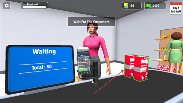 1、完成藥房前期布置后,等待顧客到來,顧客會將選購藥品放置在收銀臺。