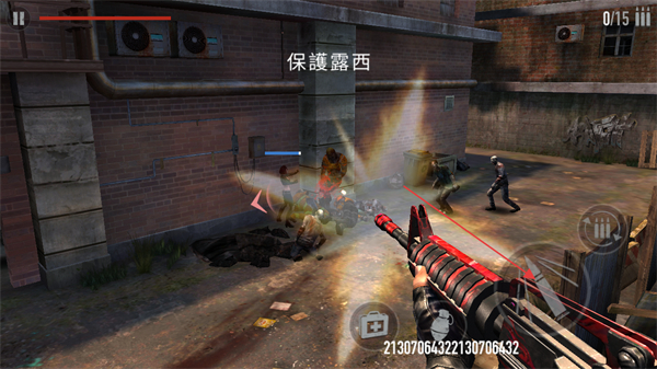 1、根據(jù)提示保護(hù)露西,用武器射擊靠近露西的僵尸,保護(hù)她安全。