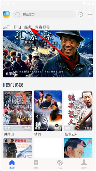 1、在影視類APP影視的頁面,點擊經(jīng)典標簽,進入經(jīng)典影視展示頁面。