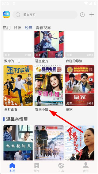 2、在經(jīng)典影視展示頁面,點擊電影安麗小姐,進入該電影詳情頁面。