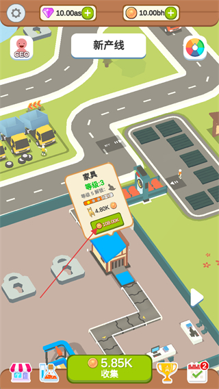 3、積累足夠金幣后,留意新產(chǎn)線提示,點(diǎn)擊解鎖新產(chǎn)線,擴(kuò)大生產(chǎn)規(guī)模。