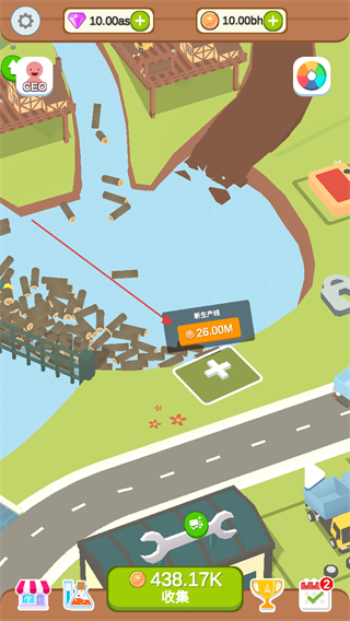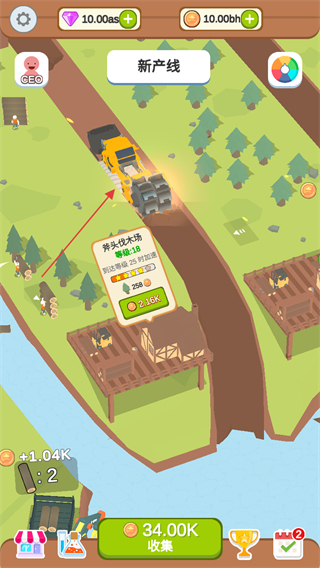 2、出現(xiàn)升級(jí)伐木場(chǎng)提示時(shí),點(diǎn)擊并花費(fèi)對(duì)應(yīng)金幣升級(jí),增加木材產(chǎn)出量。