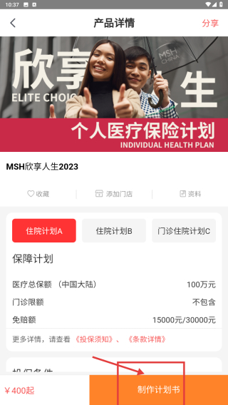 4、在產(chǎn)品詳情頁,點擊制作計劃書按鈕,開始制作該產(chǎn)品的計劃書。