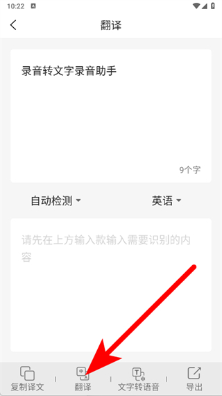 5、輸入完成后,點(diǎn)擊頁(yè)面底部的翻譯按鈕,查看翻譯結(jié)果。