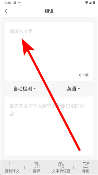 4、在翻譯頁(yè)面的輸入框內(nèi),輸入需要翻譯的文字內(nèi)容。