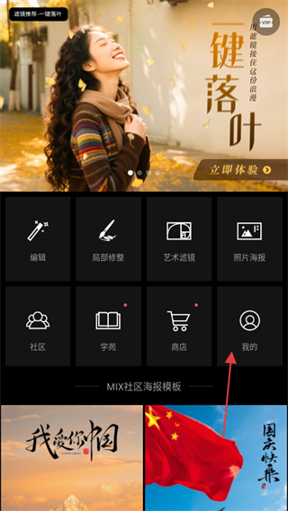 1、進入mix濾鏡大師,點擊我的,進入個人頁面。