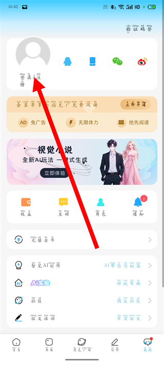 1、打開話本小說,點擊頁面底部的我的選項,進(jìn)入個人頁面。