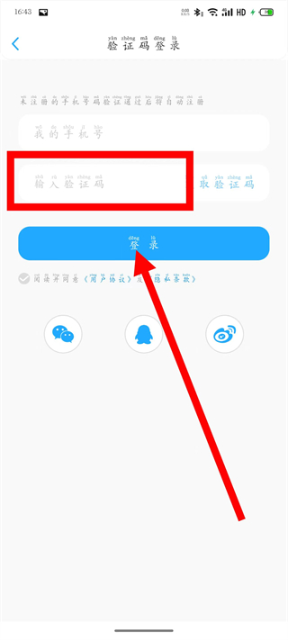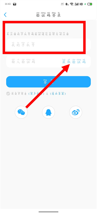 3、進(jìn)入驗證碼登錄頁面后,輸入要登錄的手機(jī)號,點擊獲取驗證碼。