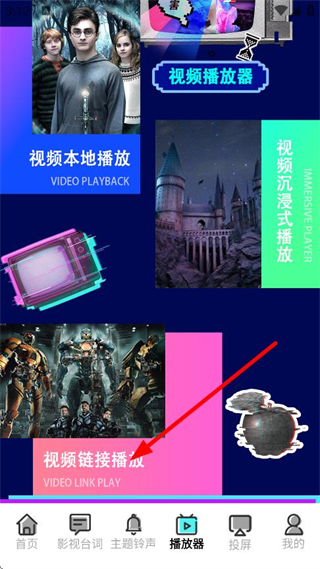2、在播放器功能頁(yè)面,點(diǎn)擊視頻鏈接播放,進(jìn)入鏈接播放器頁(yè)面。