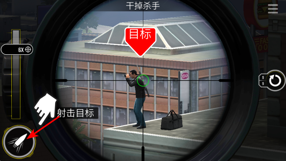2、放大目標(biāo)視野,點(diǎn)擊放大按鈕,放大目標(biāo)區(qū)域,清晰觀察殺手的位置和狀態(tài),為精準(zhǔn)狙擊做好準(zhǔn)備。