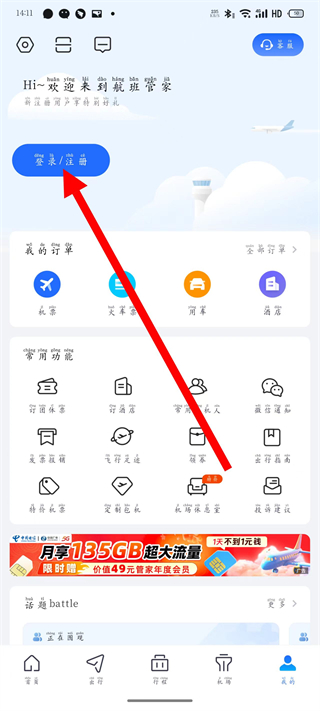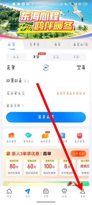1、打開航班管家,點(diǎn)擊底部導(dǎo)航欄最右側(cè)的我的。