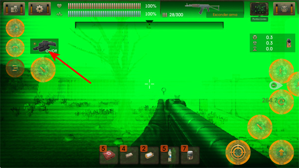2、特殊功能引導(dǎo)緊隨其后,當玩家對基礎(chǔ)射擊熟練后,引導(dǎo)會解鎖“夜視儀”這類特殊功能,玩家點擊后畫面切換為綠色夜視視角。