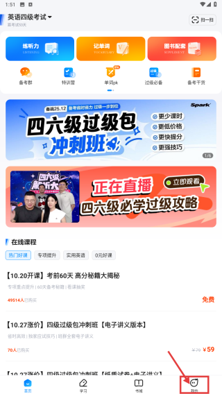 1、打開英語四級考試相關(guān)應(yīng)用,點擊底部我的選項,進入個人中心頁面。
