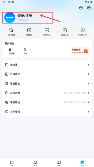 2、在個人中心頁面,點擊登錄/注冊按鈕,進入登錄選擇界面。