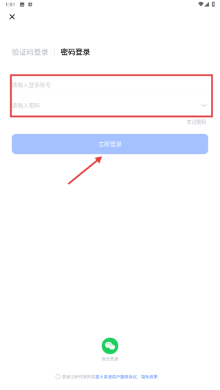 4、在密碼登錄頁面,輸入登錄賬號和密碼,點擊立即登錄按鈕,完成賬號登錄操作。