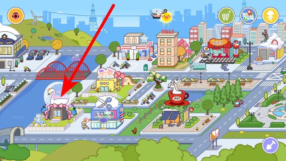 1、可在小鎮(zhèn)中探索不同建筑,如帶有天鵝裝飾的特色建筑,進入后能體驗其中的獨特功能與場景,豐富探索體驗。
