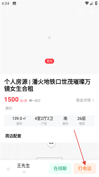 3、在房源詳情頁(yè),點(diǎn)擊打電話聯(lián)系,進(jìn)一步了解房源,滿意了就可以租下。