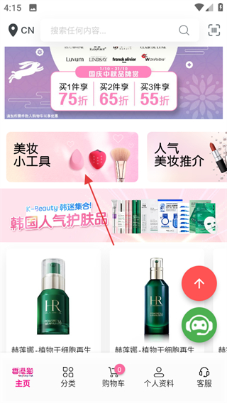 1、在HKMall首頁,點擊美妝小工具,可進入化妝工具配件板塊。