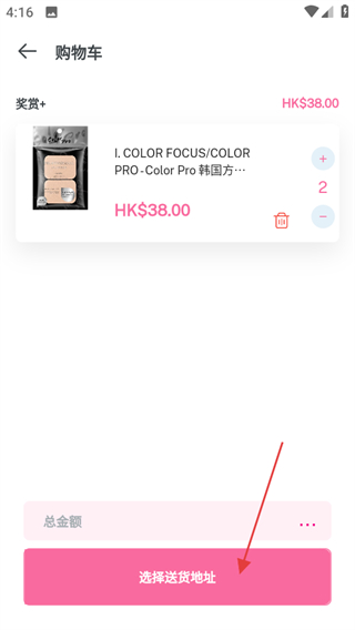 4、在購物車頁面,點選擇送貨地址可完成商品購買流程。