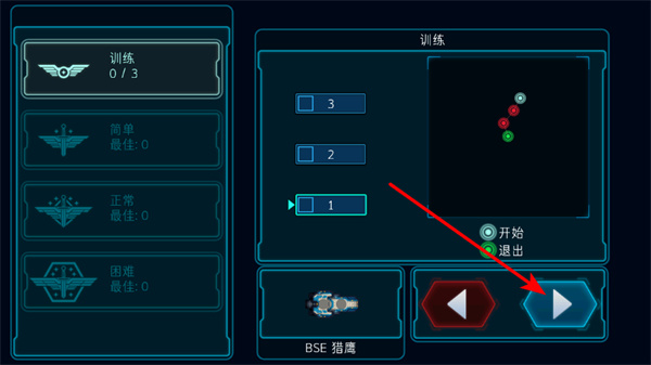 1、進(jìn)入訓(xùn)練界面后,點(diǎn)擊右側(cè)藍(lán)色箭頭按鈕,這是選擇訓(xùn)練模式的關(guān)鍵操作,切換不同訓(xùn)練難度,開啟技能養(yǎng)成環(huán)節(jié)。