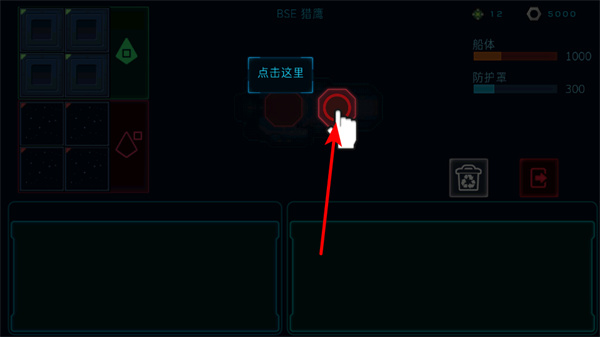 4、在BSE獵鷹操作界面,點(diǎn)擊帶有手指提示的紅色按鈕,這是啟動(dòng)核心功能的關(guān)鍵操作,點(diǎn)擊可激活飛船系統(tǒng),提升能力。
