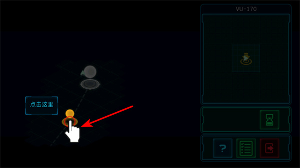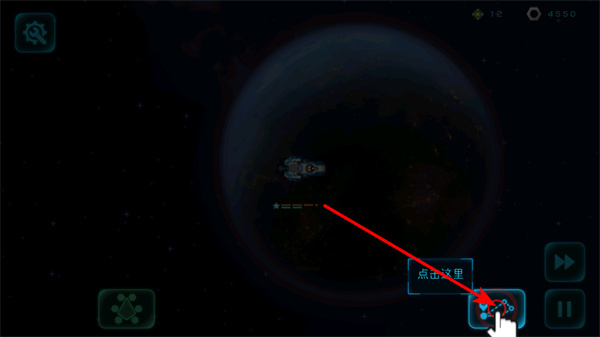 3、在太空探索場(chǎng)景中,點(diǎn)擊帶有點(diǎn)擊這里提示的功能按鈕,準(zhǔn)確點(diǎn)擊可觸發(fā)飛船操作,保障太空任務(wù)推進(jìn)。
