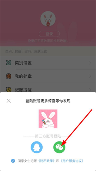 4、在登錄方式選擇頁面,選擇微信登錄,即可完成賬號登錄。