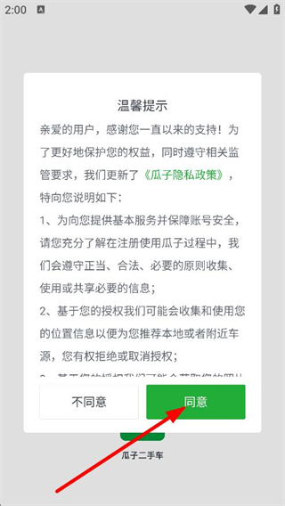 1、在溫馨提示彈窗中,點(diǎn)擊同意,進(jìn)入APP首頁(yè)。