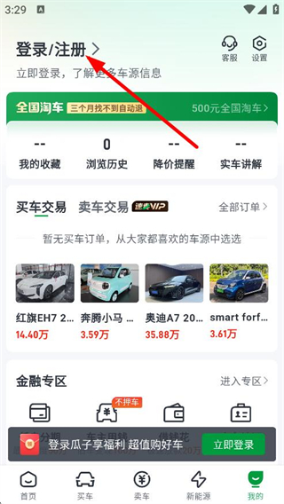 3、在個(gè)人中心頁(yè)面,點(diǎn)擊登錄/注冊(cè),進(jìn)入登錄頁(yè)面。