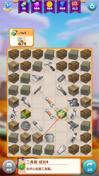 2、點擊場內(nèi)帶閃電標志的工具箱,可以獲取新的1級基礎(chǔ)物品。