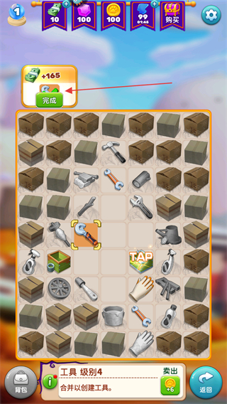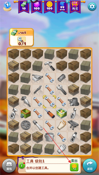 3、當場地以及沒有位置且沒有物品可以相合成的情況下,可以點擊物品選擇賣出。