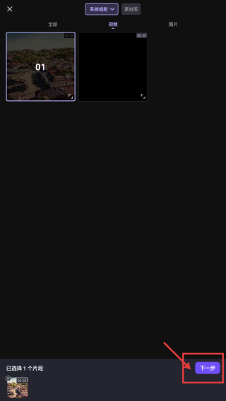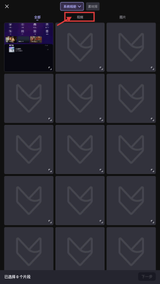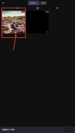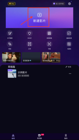 1、打開視頻編輯類應用,點擊新建影片選項,進入素材選擇頁面。