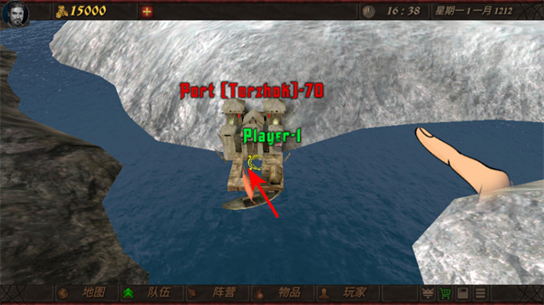 3、游戲中操控角色朝著港口方向移動,可進(jìn)入港口區(qū)域,在港口中可進(jìn)行貿(mào)易操作,推動游戲發(fā)展。