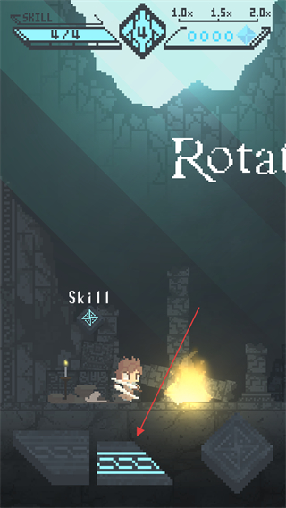 4、遇到怪物時(shí)可以點(diǎn)擊右下角的菱形石板跳躍躲避或旋轉(zhuǎn)攻擊。