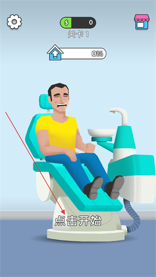 1、點擊點擊開始,進入關(guān)卡1,開始為患者治療牙齒。