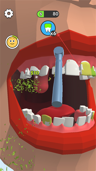 2、持續(xù)清理牙齒污漬,積累金幣,同時(shí)修復(fù)更多牙齒。