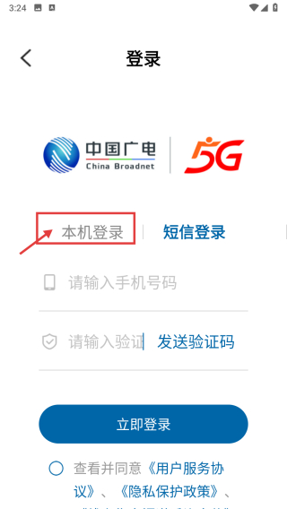 3、在登錄界面,選擇本機(jī)登錄選項(xiàng),準(zhǔn)備進(jìn)行本機(jī)號碼授權(quán)登錄。