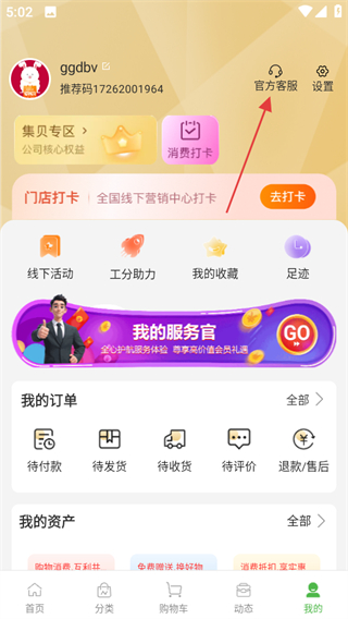 2、在個人中心頁面,點擊官方客服可進入在線客服頁面。