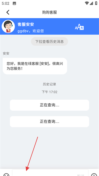 4、在客服聊天頁面,可輸入問題與客服進行對話溝通。