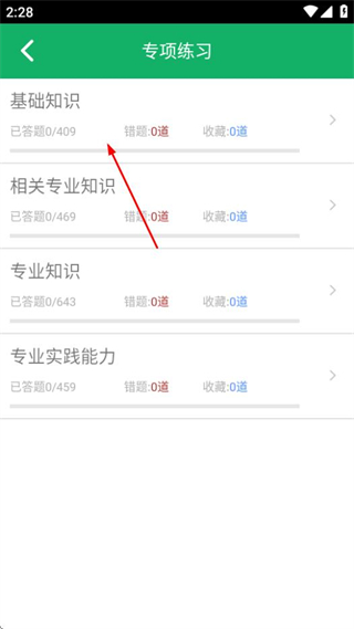 2、在該頁(yè)面,點(diǎn)擊基礎(chǔ)知識(shí)可進(jìn)入基礎(chǔ)知識(shí)題型選擇頁(yè)面。