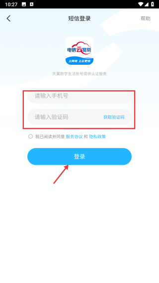 4、在短信登錄頁面,填寫手機號,獲取并輸入驗證碼,勾選同意協(xié)議后點擊登錄按鈕,完成賬號登錄操作。