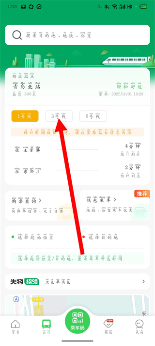 2、在線路選擇頁面,點擊目標線路,進入線路圖。